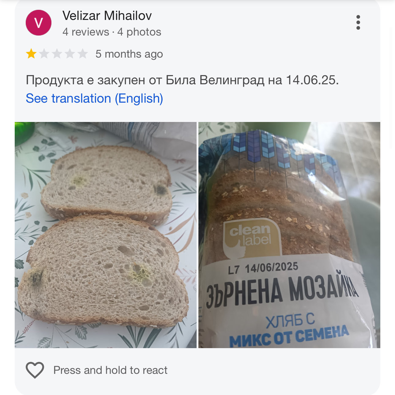 Нещо повече, готовите хлябове често мухлясвали поради лошото съхранение. Потребителите откривали мухъл едва когато се опитвали да приготвят закуска за семействата си.