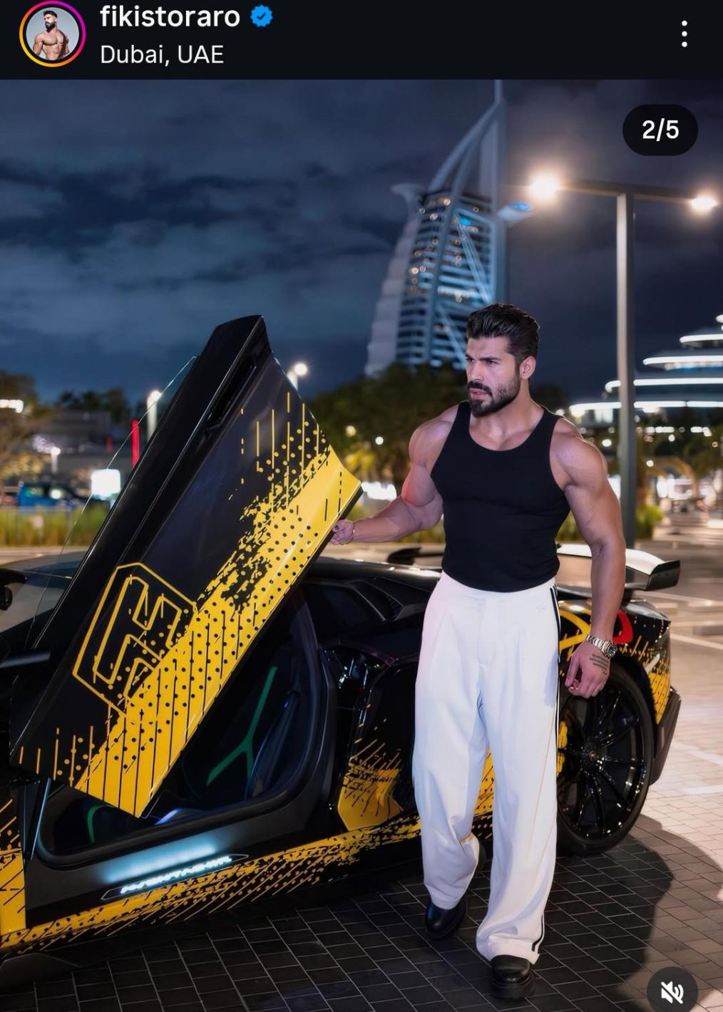 Фикито е в Дубай, където е наел суперяката кола да пробва как върви и да се снима до нея.
