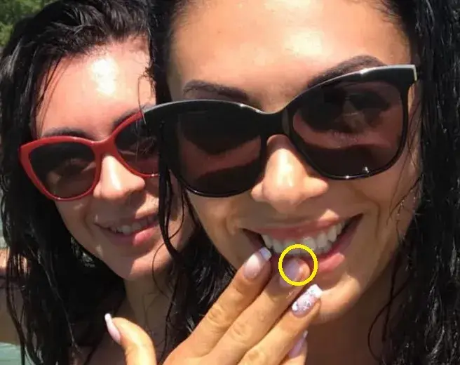 Не това е основният проблем в поддръжката на Биляна на въпросната снимка. Оказва се, че нокътят на средния й пръст е счупен. Тъй като един маникюр в САЩ е доста скъпичък, вероятно Йотовска ще изкара цялата почивка без нокът и ще си направи нова ноктопластика чак като се прибере в България.