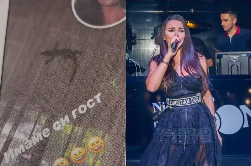 Изненадващ гост посети фолк певицата Алисия. Изпълнителката сподели снимка на гущер, който се е покачил на пердето в дома й, видя HotArena.