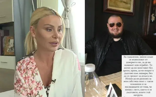 20 Септ 2024В момента е в ход реално изнудване ,типично в неин стил! Дала му е определен срок ако не намери пари ще го унижи пред цялата страна и него и баща му ,както и че ще влезе в Биг Брадъра да продължи гаврата,на нея не и пука че това е баща уж на четирите им деца ,всичко е пари за курвата,морал не познава тя !