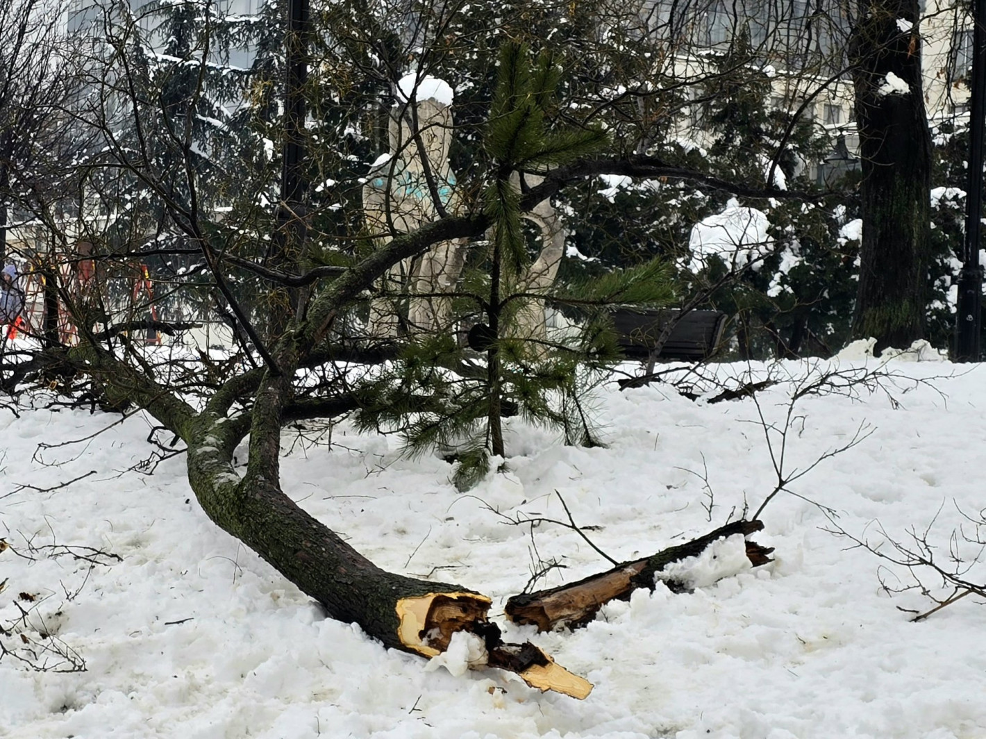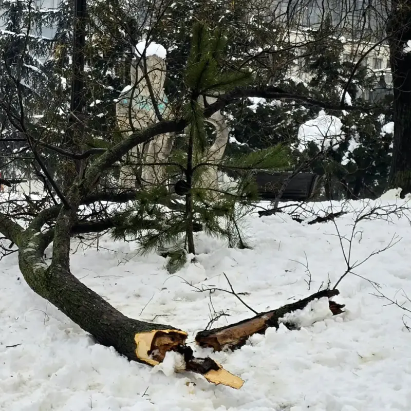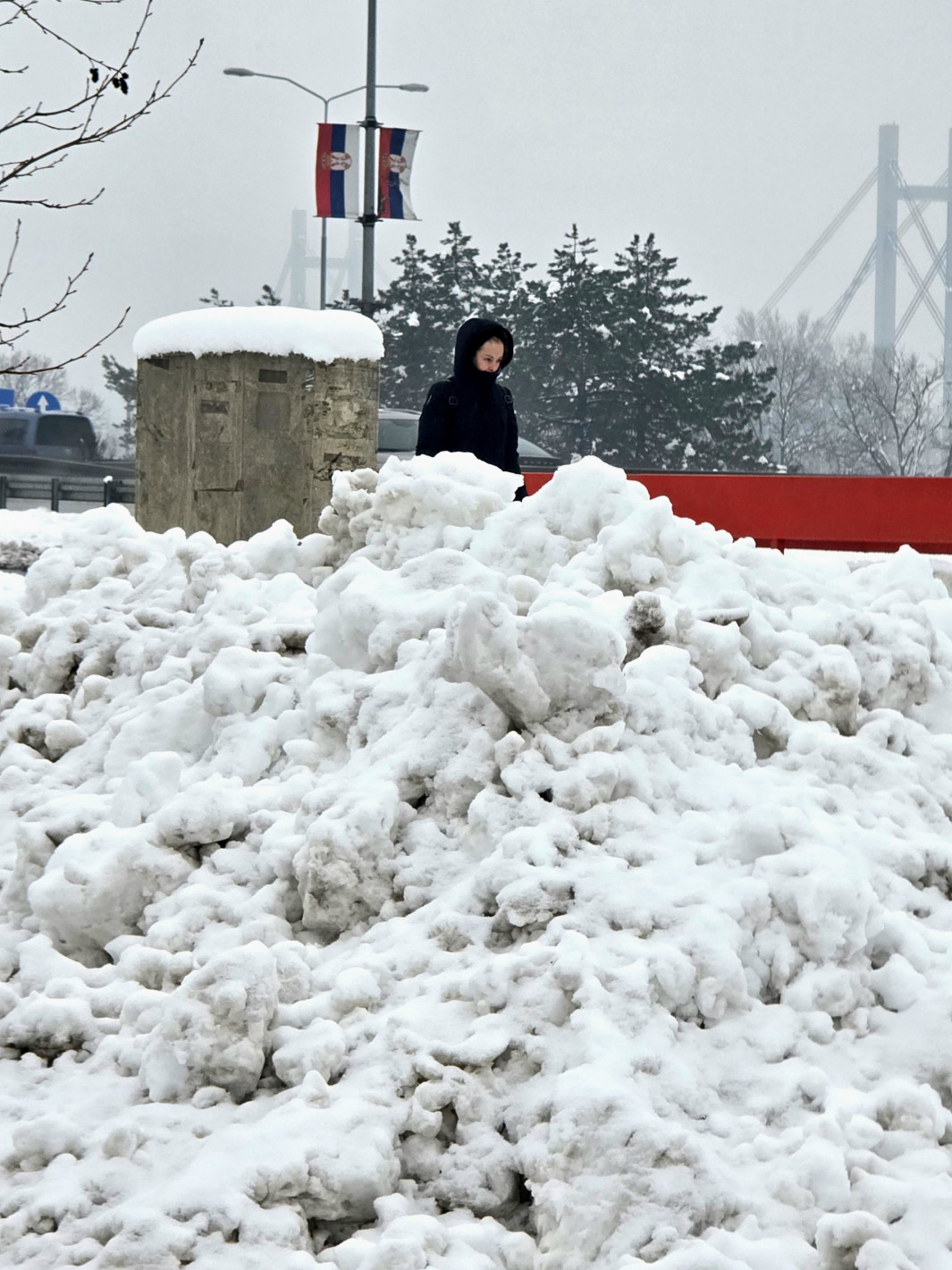В столицата Белград сутринта имаше временни проблеми с обществения транспорт, на няколко места паднаха клони под тежестта на снега, а един стълб се наклони върху спрели автомобили, но причини само материални щети, предава РТС.