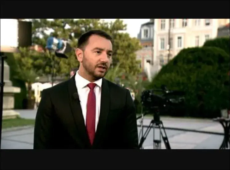 Телевизионерът не се смущава от ниските температури в столицата и издокаран в костюм и червена вратовръзка, премина през центъра на града, пише „България днес”.