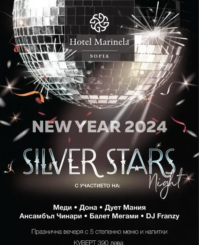 Меди, Дона, Дует Мания и балет “Мегами” са само част от новогодишната ни празнична програма, а нашите шеф готвачи са подготвили 5-степенно меню с подбрани ястия от традиционната българска и интернационалната кухня .