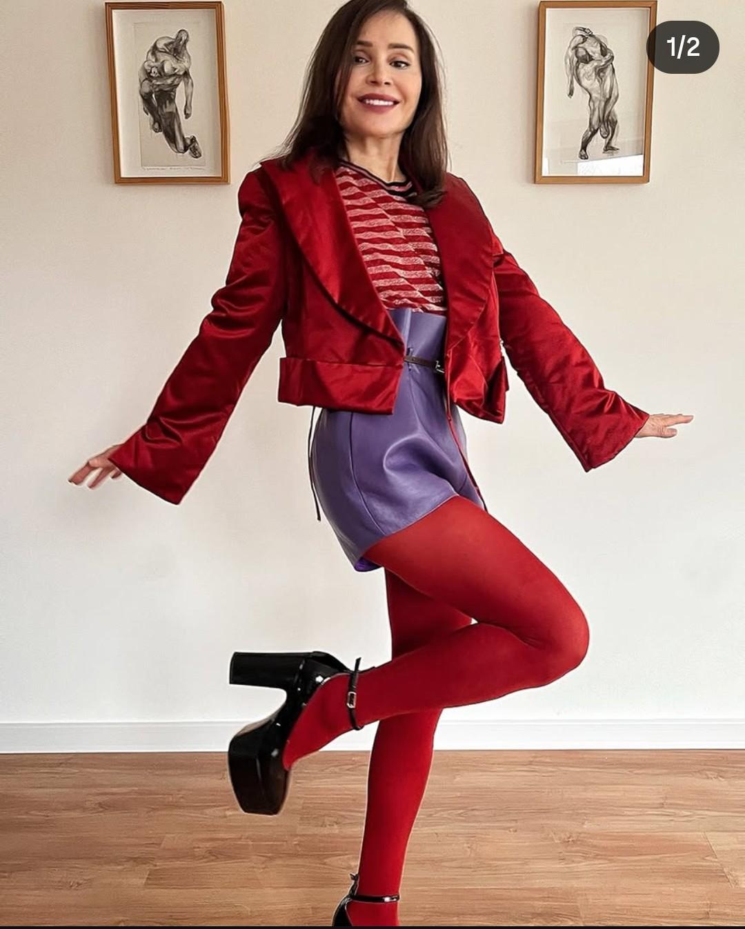 Тя комбинира стилния минижуп с ален топ и наситеночервен чорапогащник, който подчертаваше нейните извивки. „Секси и уверена“, така можем да опишем визията на Ирина, която стана център на внимание на празника.