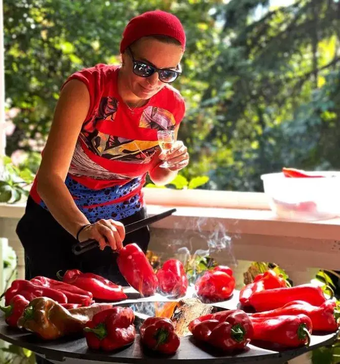 Кулинарката не пече чушките като повечето нормални хора - в чушкопек, а се фръцка и ги пече на огън, което пък дава страхотен опушен вкус, пише „България Днес“. Да си оближеш пръстите!