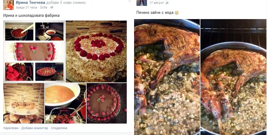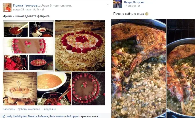 Всеки, който посети профилите във Фейсбук на бившата и настоящата жена на продуцента Иван Христов, може да изпита неистов глад. Толкова манджи и вкусотии, че няма как да не ти се прияде, видя HotArena.net.