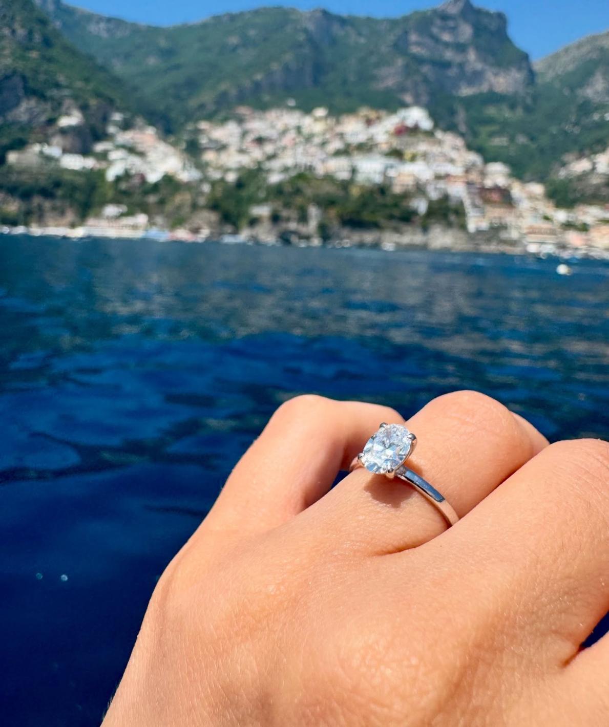 Мъжът пада на колене с диамантен пръстен, с който се врича във вечна вярност на половинката си. Честито!
