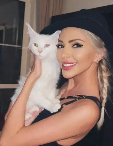 На тях плеймейтката позира полугола в изкусителни пози. Жанета е гушнала и снежнобяло коте, което било новата й жива играчка.