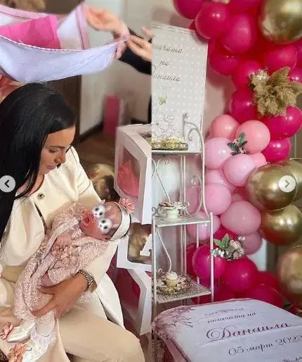 Стилното парти е било в изцяло розов цвят, е видно от инстаграма на докторката, избраница на Джино. На традиционната погача, на която присъстваха само жени, момиченцето Данаила е засипано с куп подаръци в червен, лилав, розов цвят, става ясно от фотосите.