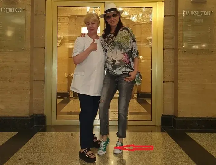 Жени Калканджиева след толкова десетилетия ходене на висок ток вече не може да се отучи. Ето, вижте я! Дори когато щрапа с равни гуменки, тя стъпва на пръсти, а петата е във въздуха! Невидими токчета!, забеляза „България Днес“.