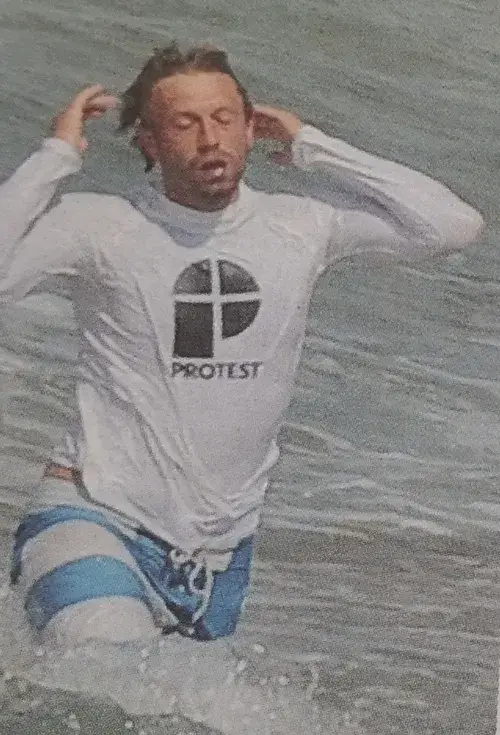 Когато се качва на сърфа, няма как – Калин навлича специална екипировка и влиза в морето по-облечен от мюсюлманка. Докато дърво и камък се палят и топят от жегите, Врачански се чувства перфектно и дори е фен на високите температури, пише „България Днес“.