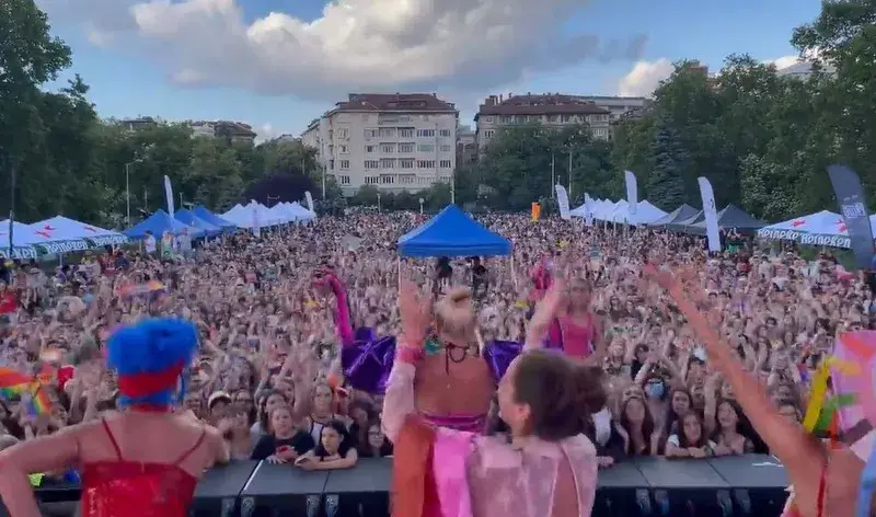 Хитовата блонднка изскочи на сцената на София Прайд, както се очакваше, с ефектен тоалет, подчертаващ идеалните й форми. Тя бе съчетала розовия си костюм на райе с лилави буфон ръкави и слънчеви очила в същия цвят. На сцената с нея танцуваха и пяха и водещите на събитието, които бяха с не по-малко провокативни визии. В един момент към тях се присъедини и Мила Роберт, която също бе сред изпълнителите на концерта. Другите бяха Дара Екимова. Виктория, инди рок групата Hayes & Y, Рут Колева, Прея, Папи Ханс.
