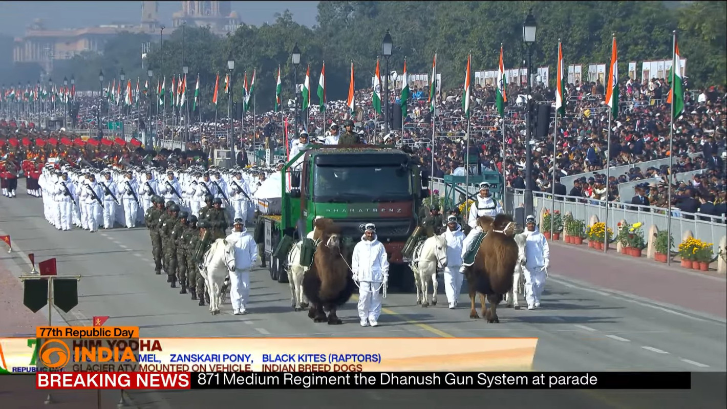 В парада участваха не само военни оркестри и кавалерийски части, но и камили, мотоциклети и дронове, които демонстрираха не само мощта на индийската армия, но и богатата история на страната. Премиерът Нарендра Моди заяви: "Този ден ни вдъхновява в нашата обща решимост да изградим развита Индия!".