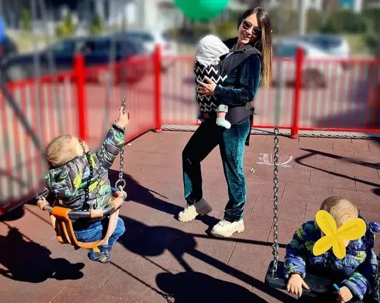 Плеймейтката Ася Капчикова използва първите слънчеви дни и изведе на разходка и тримата си синове.