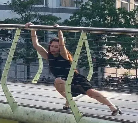 Сексгуруто Наталия Кобилкина нагледно показа кака пада на мост, а след това се изправя на крака, при това с тясна черна рокля.