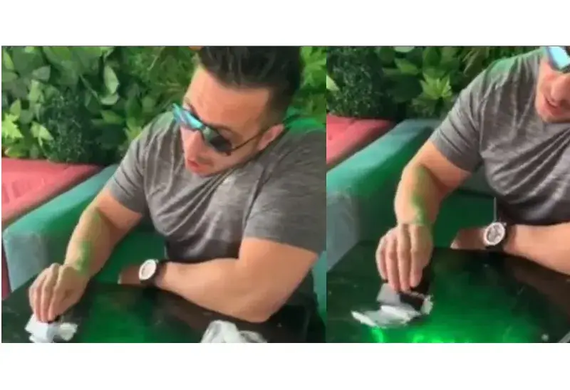 Разбира се, материалът е пудра захар и Коцето не използва наркотици, той започва да топи кроасан в сладкия прах, а сламката я слага в коктейл.