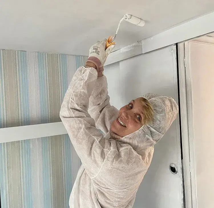 Актрисата Койна Русева нахлузи работен гащеризон и влезе в обувките на бояджия през изминалия уикенд, видя HotArena.