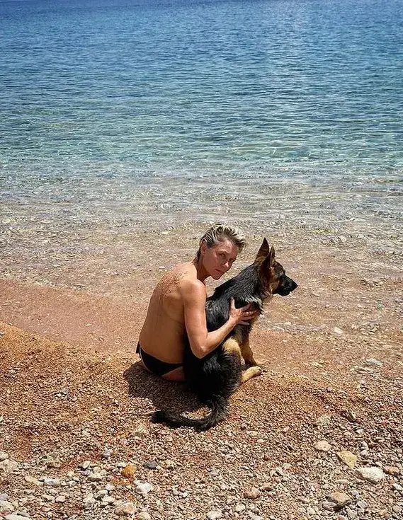 Койна Русева се излегна на плажа заедно с домашния си любимец – овчарка, която й послужи за възглавница.