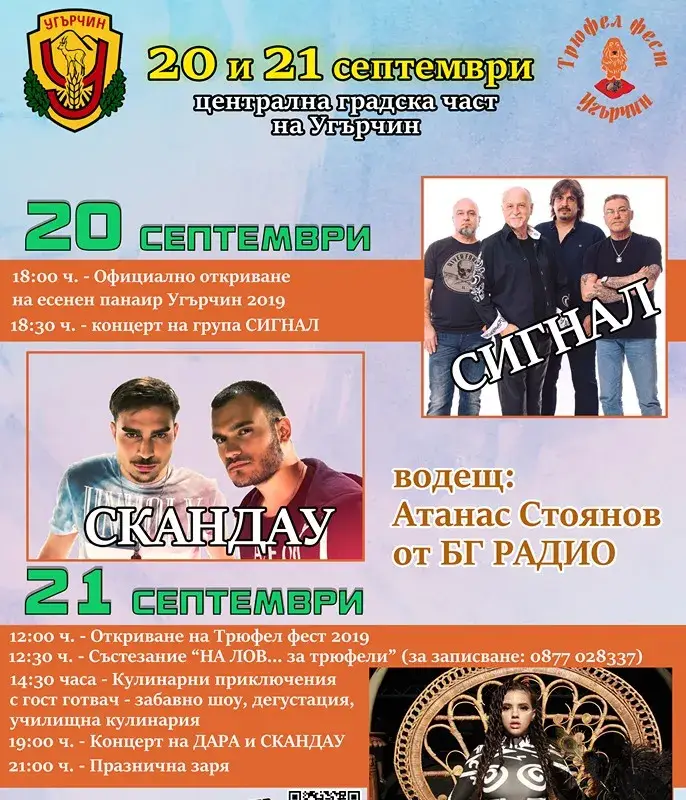За четвърта поредна година от 20 до 21 септември ще се проведе традиционния Фестивал на трюфела в град Угърчин /обл. Ловеч/. Състезанието „На лов за трюфели“, конкурс за най-очарователно куче, приготвяне и безплатно раздаване на вкусни ястия с една от най-скъпите гъби, носещи и другото наименование - „черен диамант“ и концертна част с музика на живо от легендарната група „Сигнал“, както и със съвременните любимци в поп музиката - „СкандаУ“ и Дара, са само малка част от изненадите, които организаторите са приготвили за своите гости.