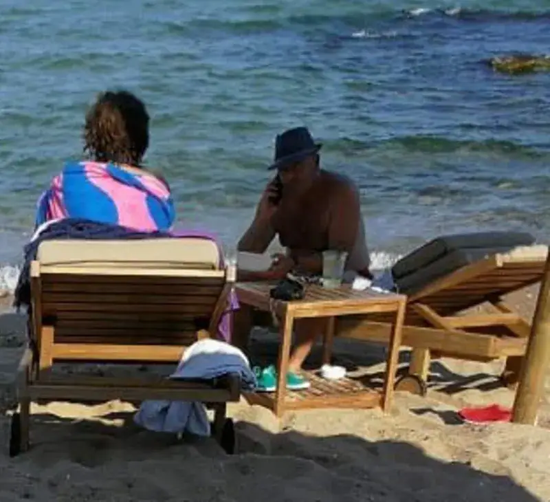 Генералът и съпругата му Елена бяха засечени да се припичат в тихия курорт Черноморец в Бургаския залив. Броени дни преди рождения си ден миналата седмица Мутафчийски, заложил на бански в червен цвят, разпускаше с плуване и почти безалкохолен коктейл със спрайт и малко мента. Заедно със съпругата си те обядваха и на шезлонга, като си взеха риба от ресторанта на плажа.