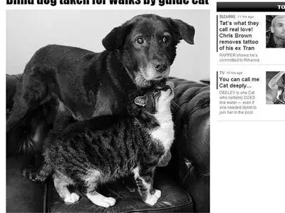 Сляпо куче отново може да се наслаждава на дълги разходки - благодарение на водача си, който е котка, научи HotArena.net.
