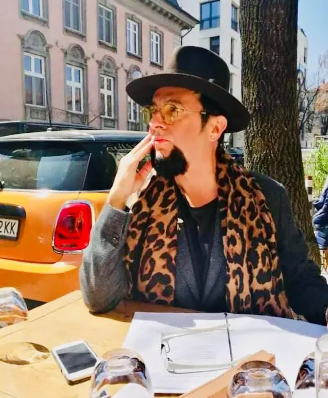 Както винаги, лордът беше облечен елегантно, нищо че дрехите му бяха зимни. Марковото му черно-бяло палто хващаше погледите на минувачите, а също и преметната през рамо голяма червена кожена чанта. Лордът шляпаше със струващи 600 лева лачени вишневи кубинки, а артистичния му стайлинг допълваха бежово бомбе, шарен шал и очила. Евгени отново грижливо бе оформил брадичката си във формата на черен прилеп. Тази ефектна прическа на лицевото му окосмение е запазена марка на бившия ватман вече няколко години, припомнят запознати, писа Уикенд.