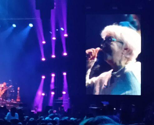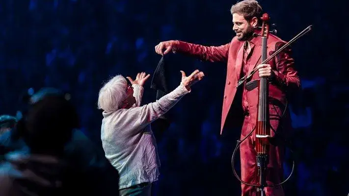 Баба Юлия бе на първите редици пред сцената на мегашоуто на хърватския виолончелист Степан Хаузер. Тя снима изявата му с телефон, пя и танцува. И получи неочаквана награда от сексапилния музикант - кърпичка, с която той се забърса след шеметни изпълнения.