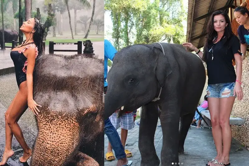 Почти два месеца, след като Николета Лозанова си направи фотосесия до малко слонче в Бали, същото реши да стори и и Преслава на о-в Пукет, видя HotArena.