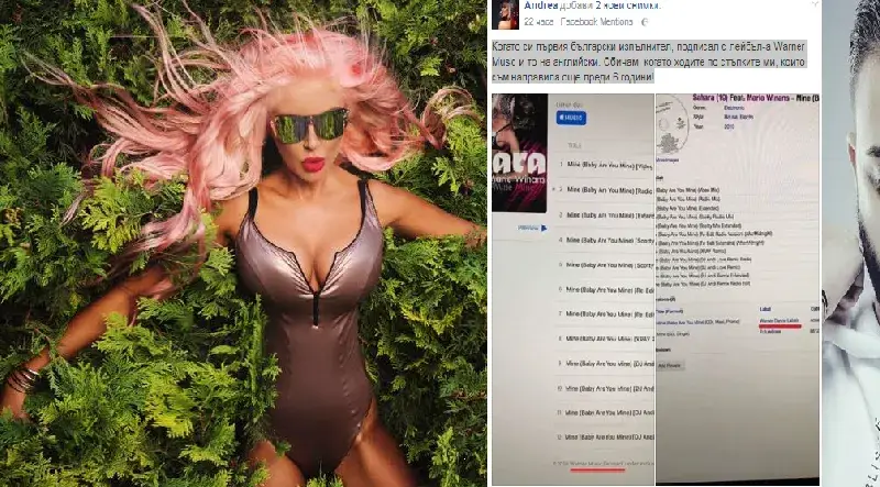 \"Днес във Facebook забелязах как всички пишат суперлативи на Криско за успеха му с Warner Music, а когато Андреа направи това преди 6 години, никой не каза и дума. Поне не и в България!