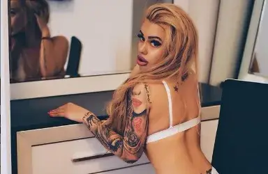 Новата снимка на моделката с гигантските силиконови бомби го показва. Седналата в сексуална поза с вирнато дупе назад Кристин има татуировка на рамото – една от многото, показваща лице на жена с огромни червени джуки, също като нейните, писа „България Днес“.