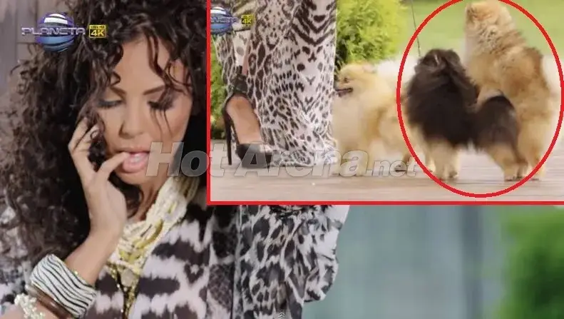 Но това може да остане като проекто-идея за следващия й клип – докато камерата снимка свръхсексапилното й тяло, едно кученце се бъхти върху крака й! Класика!