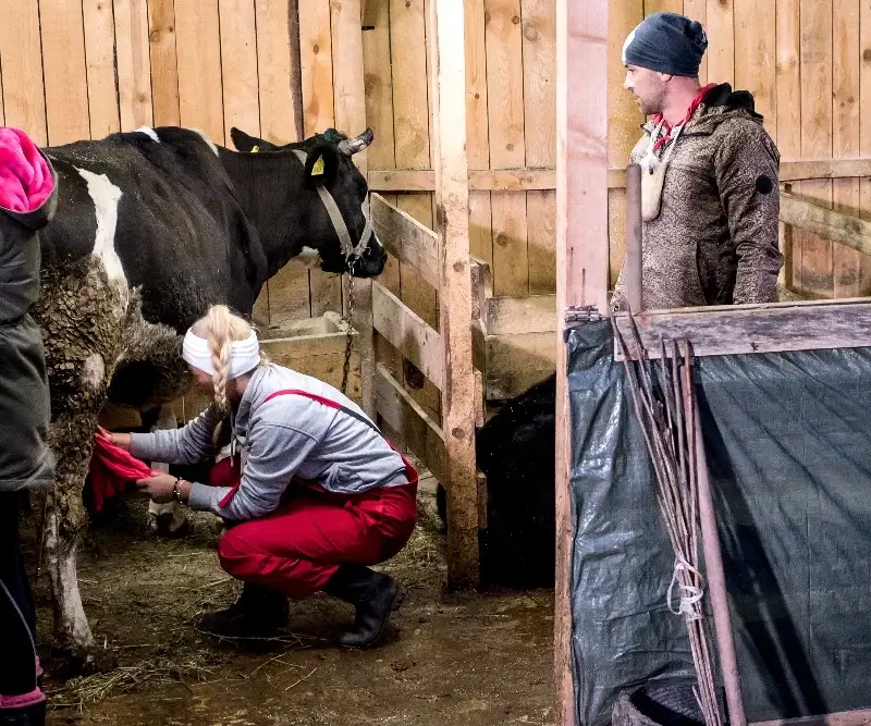 Кравата Петкана се оказа едно от най-големите изпитания за фермерите. Бременното животно е едно от най-свирепите добичета и редовно раздава ритници, докато я доят. Нито откритият урок от двама пастири, нито напътствията на Финци, помогнаха на младите фермери да намерят подход към агресивната бременна крава.