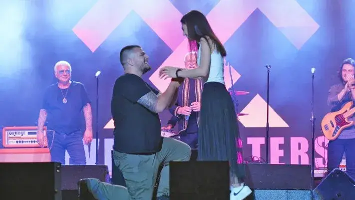Мартин падна на колене и с пръстен в ръка предложи брак на любимата си Здравка пред очите на стотици зрители, изпълнили Летен театър \"Бунарджика\". Публиката се събра, за да преживее незабравима вечер с някои от най-великите рок парчета на България. Отговорът на момичето, разбира се, беше: \"Да\", писа \"България Днес\".