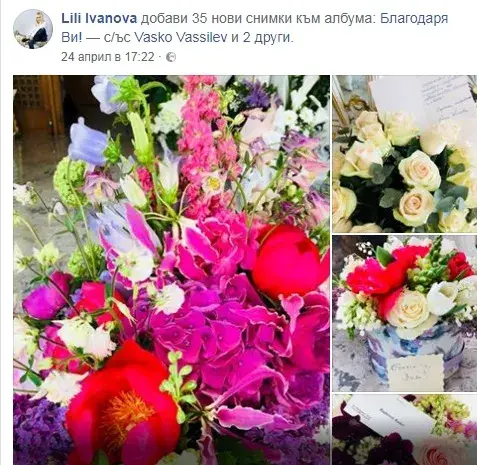 Самата тя се похвали с даровете на Фейсбук страницата си. Кокошката от млечен и бял шоколад пристигна заедно с бонбони от черен шоколад в кутия с лакомства, но певицата деликатно покри подателя. Това се случи и с някои от букетите, но на повечето ясно се четяха картичките с пожеланията, писа „Телеграф“.