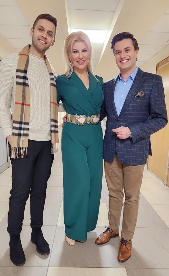Многоуважаемият Георги Любенов създава в мен впечатлението, че носи един и същи костюм в последните месеци. Може от БНТ да са го задължили да носи униформа, мигар не го бива да избира дрехите си. Гаджето ми, който е леко германец, каза че по стил Любенов прилича на чичо му, който живеел около Мюнхен. Като го попитах това комплимент ли е, гаджето се направи на ударен. Комбинацията на синкаво сако и бозав на цвят панталон е добра за стените на шивашки цех, но за екран... Нелина ме разсмива, напъхана в този топ плат. Цветът е почти толкова вълнуващ, колкото плочките в тоалетните на БНТ а пафтите ме пренасят на съборите някога в село Поибрене. Ако някой ден ми трябва хумористичен образ за новите ми разкази, ще си спомня тази визия на певицата. Момчето вляво- Бъбръри знаят ли за наличието на този шал?