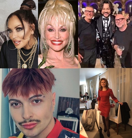 Тази очарователна рожденичка е като потопена в зеленясал аквариум, откъдето смятам, са се появили тези водорасло- подобни зеленилки по дрехата и. Напълно е възможно и да е била с красива бяла, пайетена рокля, да е режела салата и вентилаторът да е обърнал накълцаното по нея. Търся справедливата страна на въпроса,защото Доли Партън е хем представител на една народна култура като кънтрито, хем ми се искаше тази рокля да не я беше слагала. Погледнато от моя гледна точка, повечето от зеленолистните пайетени украси, можеха да бъдат спестени или част от тях да бъдат поставени в косите. Именно там, защото толкова изобилната от коси прическа изисква поне мъничко подсилване. Кънтри звездата има пълни с обещания очи, както и прелестна усмивка, готова да изпълни всякакви певчески очаквания. Но модни? Не се наемам да коментирам това, познавайки гардероба и, изобилстващ от лъскаво и несъвместими цветове. Мога за собствена утеха да препоръчам на Доли да не прави толкова прекалена вече прекалената си от бляскавост външност, но и в никакъв случай да не носи заемки от гардероба на българското кънтри- чалгата.