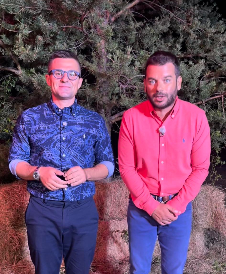Истински съм объркан, мили хора. Тук лявото е синьо а дясното- червено. Не трябва ли да е обратното или обратното не е каквото беше? Нищо. Вляво- Андрей, като млад комсомолец „крещи“ в синьо, с якичка на ризата, която плаче за прекрояване, тъй като годината ако младежът не знае е 2023. Ръкавите са навити за бригадирския труд през есента, прическата е също памет от бригадирското движение на моята младост. Панталонките андрееви плачат за коланче, но такива времена настанаха, че по-добре човек да си мълчи. Какво ли прави ако в самолета кажат- затегнете коланите... Другачето му- Иван, грее в червено. Този цвят защитава мнението ми за него а какво е то, ще запазя в тайна. Гаджето ми, понаучил вече български ми обръща внимание, че видите ли, ризата май била розова. Казах му, че Иванчо не е такова момче и той си дояде банана. Синият панталон е истинска находка. Как го е опазил от бригадирските времена, а, кажете ми... Предлагам от днес за улеснение да ги наричаме Иваниандрей. Пести място а и е гот.