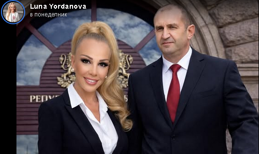 Певицата пусна в социалните мрежи снимка, генерирана с изкуствен интелект, на която позира редом до Радев. Вместо с обичайните си лъскави сценични тоалети, този път Луна е пременена в строг официален костюм с бяла риза – очевиден намек за „държавнически“ образ.