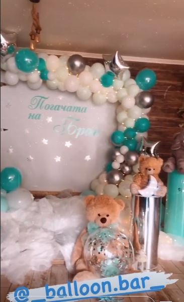 Момчето навърши 40 дена и майка му спретна ритуала \"Погача\". Декорът бе с бели и зелени балони, а за партито Луиза избра да е в сладкарницата на жената на колегата й Александър Сано - Нели, позната от Огледала, пише Телеграф.