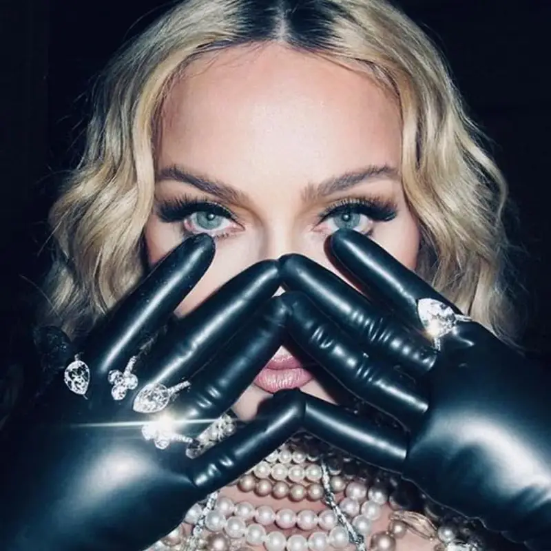 Поп иконата носи колието Rose Elegance, което съчетава перли с различни размери в палитра от цветове, вариращи от розово до слонова кост, бежово и бяло. То е украсено с 1013 фасетирани кристални висулки и перлени кристални мъниста от слонова кост. Тя носи и блестящи пръстени по ръцете си. „Тези прекрасни ювелирни произведения са в отличен синхрон със стила на Мадона, с ултимативността на нейния вкус“, споделя проф. Стойков.