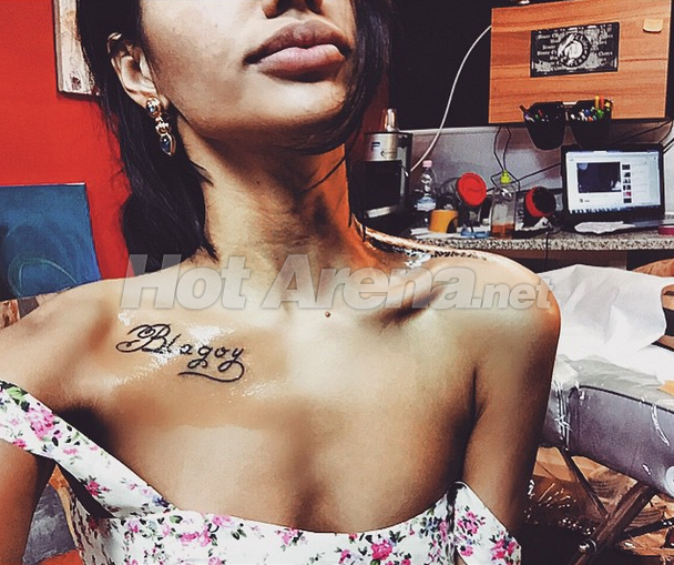 Новата изгора на Благо Джизъса - Полина, започна да шари тялото си по подобие на своя любим, който почти няма място по себе си от татуировки, писа „Телеграф“.