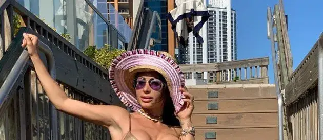 Те са от слънчев Маями, където организаторката на конкурси за красота трупа тен и хубави емоции. Докато „ваканцува” активно, атрактивната брюнетка не пропусна да остане без горнище.