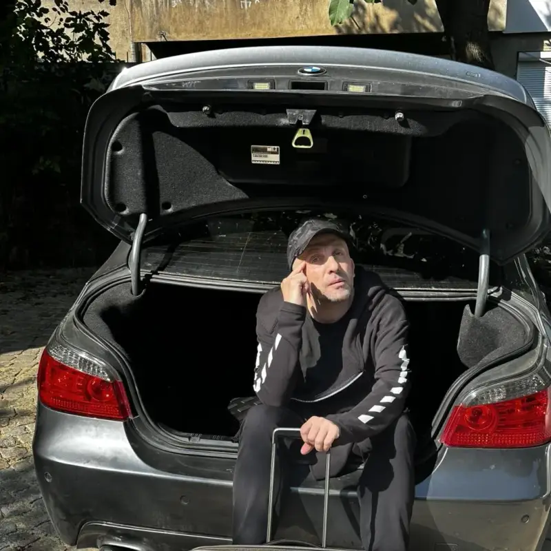 Мариус се качи в багажника и показа куфара, който взима със себе си за турнето, което стартира с хитовата постановка "Нашенец" по Чудомир, пише Телеграф.