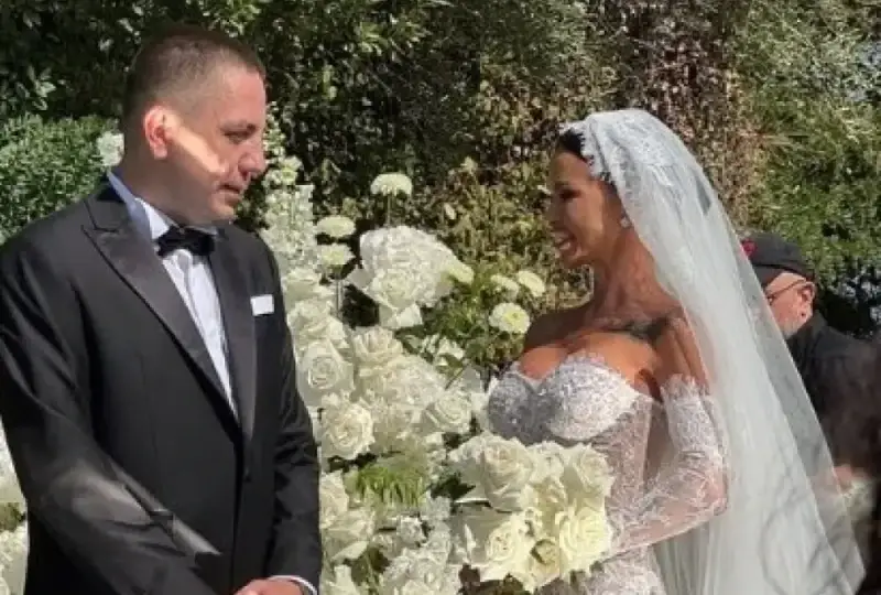 Сватбата им беше на гръцкия остров Корфу във вила под наем. Само ангажирането на имота е излязло доста скъпо на младоженците, тъй като те се венчаха в началото на август, когато е пикът на летния сезон.