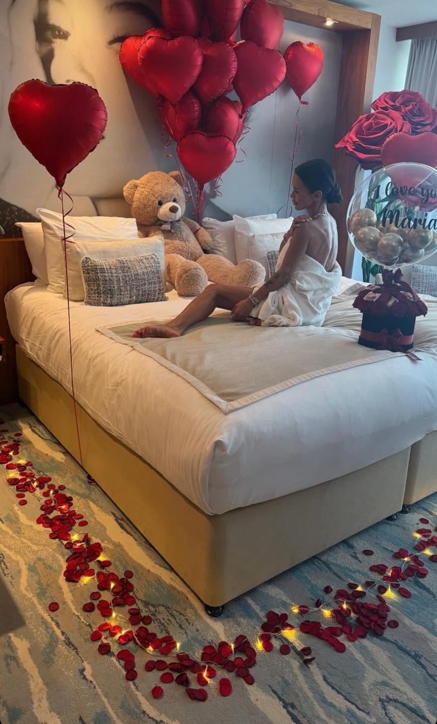 Тази седмица, поп-фолк иконата Мария успя да завладее вниманието на феновете си с неустоими снимки, които буквално оставиха всички без дъх! Спалнята ѝ е преобразена в истински рай – потънала в червено, обсипана със стотици рози, балони и романтични светлини. Атмосферата е толкова страстна, че изглежда направо излязла от холивудски филм за любов!