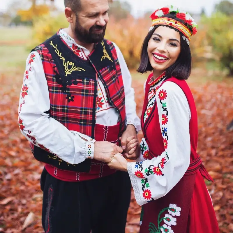 Топ дизайнерката Миглена Каканашева отново успя положително да изненада феновете си. Каканашева сподели прекрасни кадри в социалните мрежи, на които тя и мъжът на сърцето ѝ - транспортният бос Румен Рончев позират с народни носии и ни връщат към традициите. Двамата влюбени са облечени в изящни, традиционни тракийски носии, които са истински празник за окото.