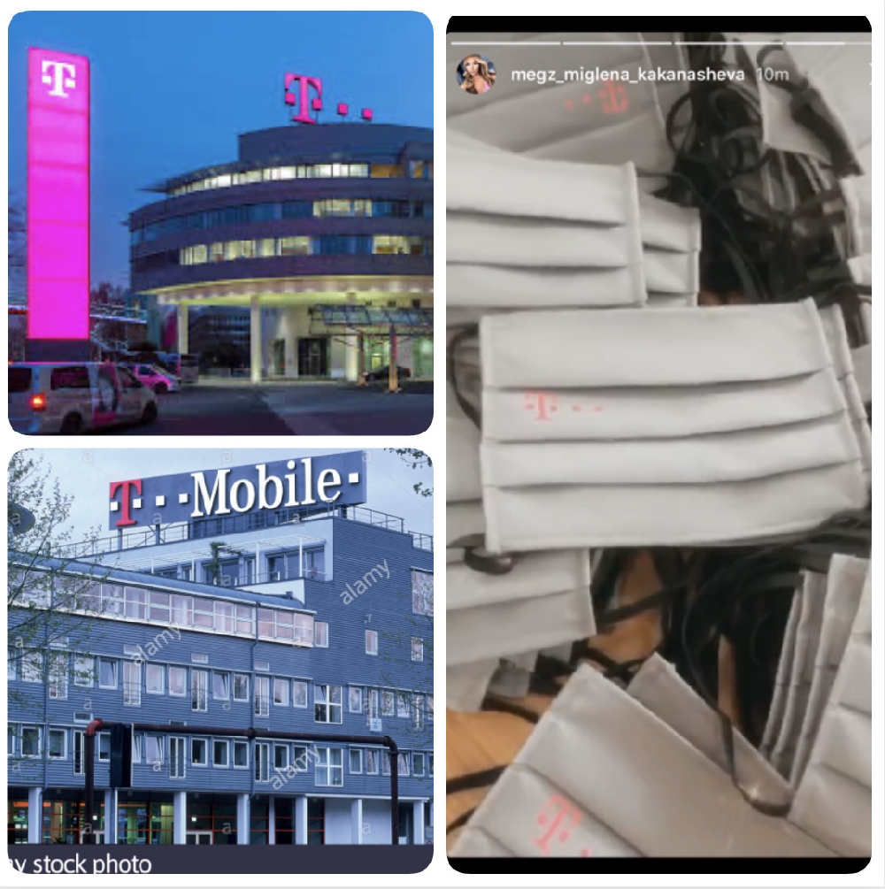 Маските са с правоъгълна форма и логото на мобилния оператор. Компанията има хиляди офиси в цял свят и изглежда Мегз ще се подсигури добре с тази поръчка. Изглежда затова Каканашева е спокойна по време на кризата и не тъгува за магазините си, които затвори заради пандемията.