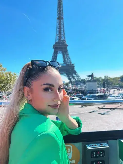 Изпълнителката избра да отиде на ваканция с близка приятелка. Двете момичета обикалят забележителности и луксозни заведения из столицата на Франция. „Празнувам щастието и любовта в Париж“, написа певицата и получи безброй комплименти от почитателите си. Тя отново показа невероятна визия, като избра зелено сако, съчетано с къс топ и черни слънчеви очила.