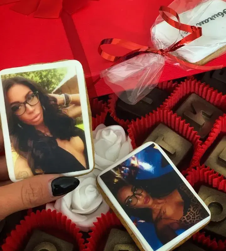 Миската изпаднала в шок когато отворила пратката доставена от куриер. В луксозна кутия с шоколадови бонбони и бисквитки с нейния лик и надпис „Обичам те“ получила моделката преди ден.